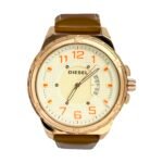 ⌚ Gold-Dial Watch (Brown Strap)