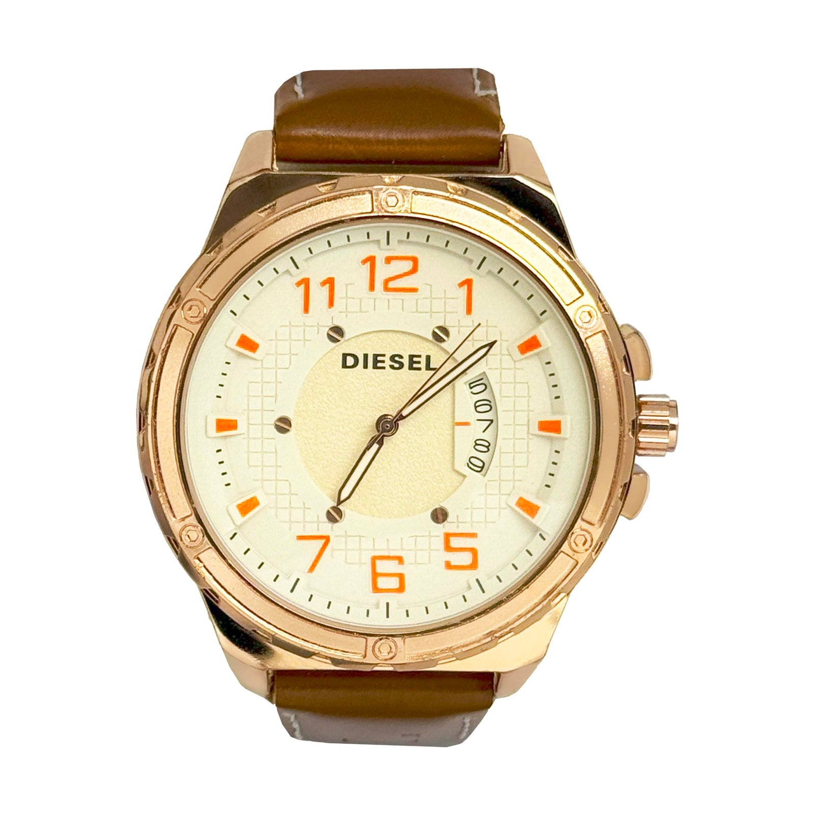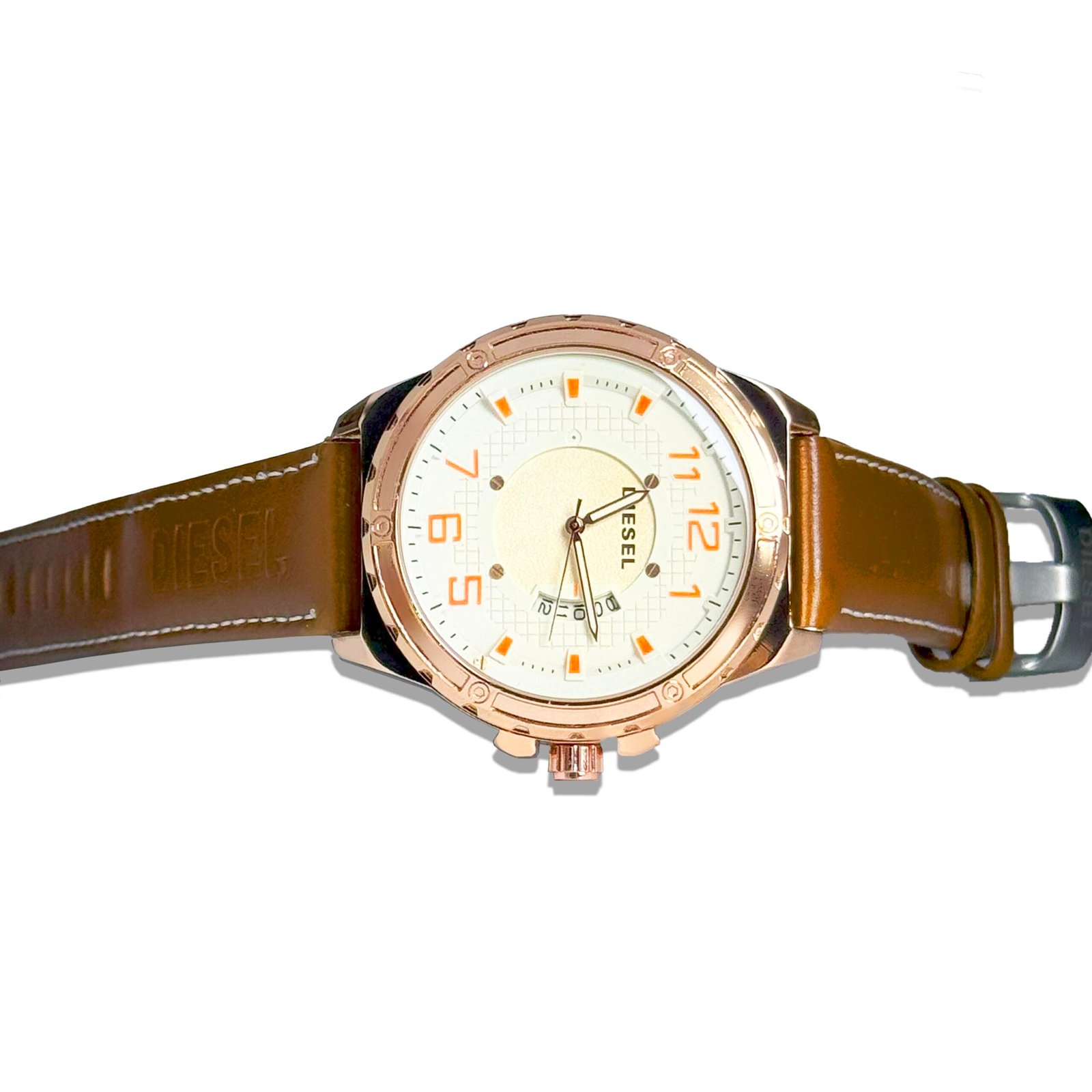 - Premium brown leather strap
