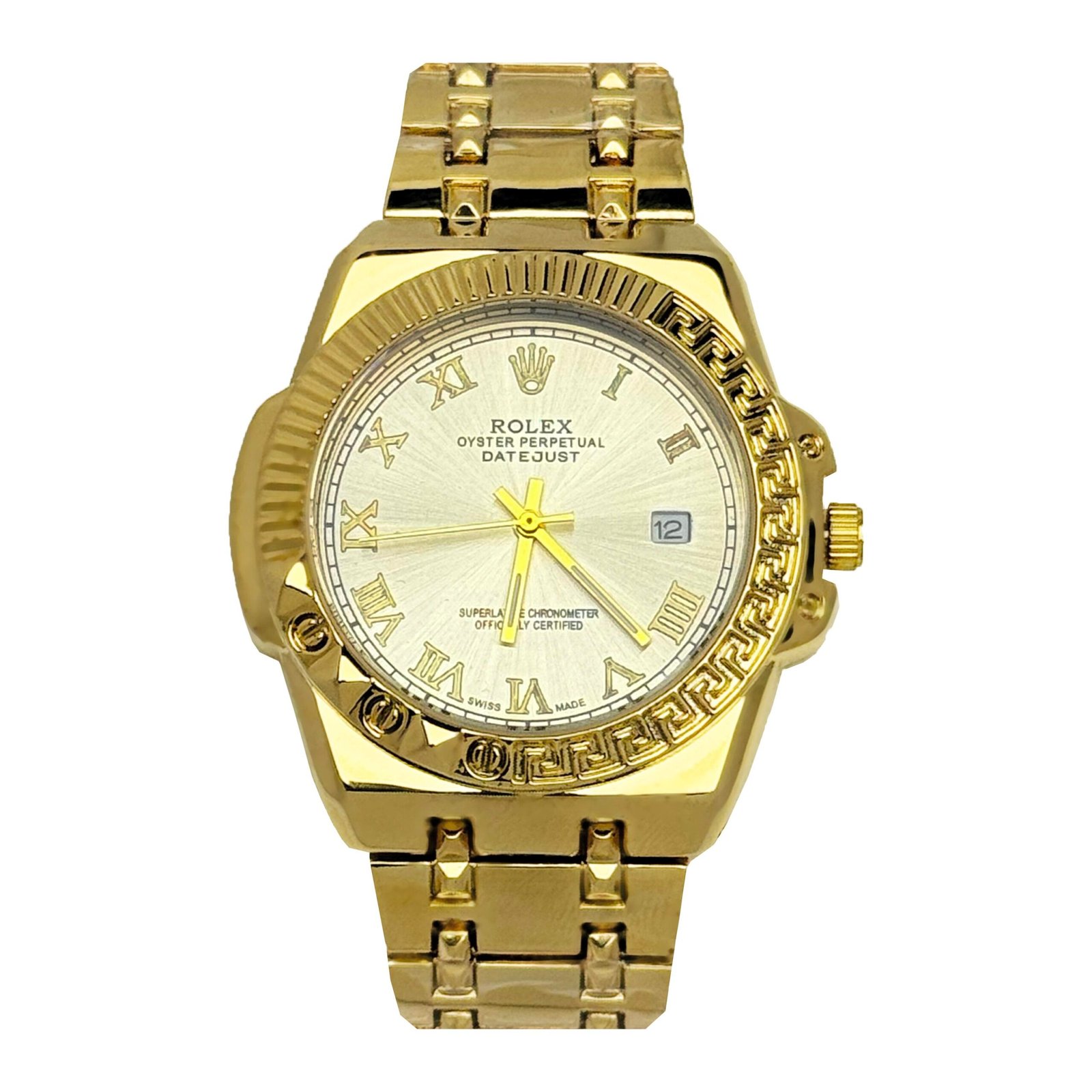 • Roman numeral dial with date display