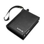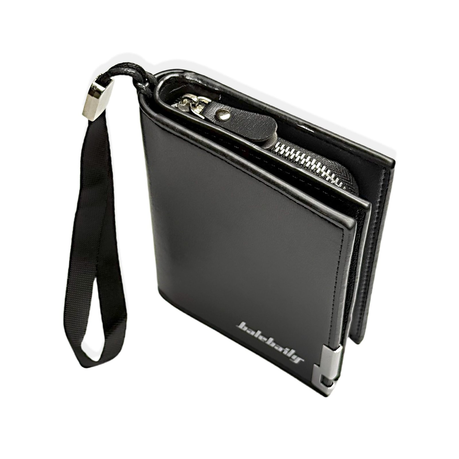 A stylish black leather wallet with a secure zip closure, designed for those who value both practicality and elegance.This handy black leather wallet with a zip combines elegance and functionality. Its compact design fits perfectly in your hand, offering secure storage for cards and cash while maintaining a sleek, stylish appearance for everyday use