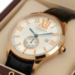 - Functional Sub-Dial: Features a small seconds sub-dial at 6 o’clock, adding a traditional complication detail, alongside a convenient date window at 3 o’clock.